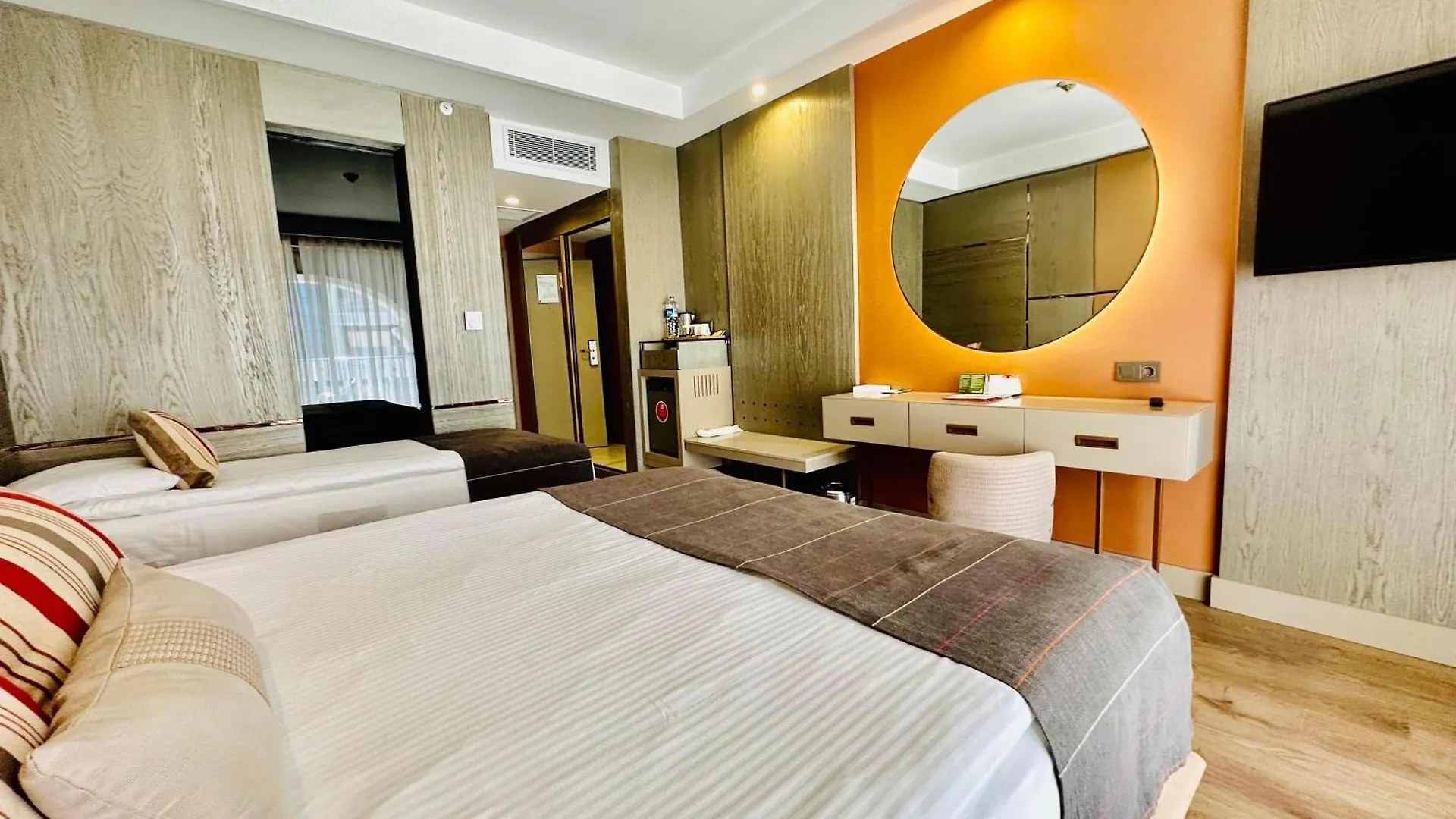 L'hotel Arycanda Kirman Premium offre des chambres avec un balcon comprenant une climatisation, ainsi qu'une TV à écran plat avec des chaînes satellite. Climatisées comprend des salles de bain privées avec une douche ouverte et un évier. Elles viennent avec des équipements comme un sèche-cheveux et des draps de bain.